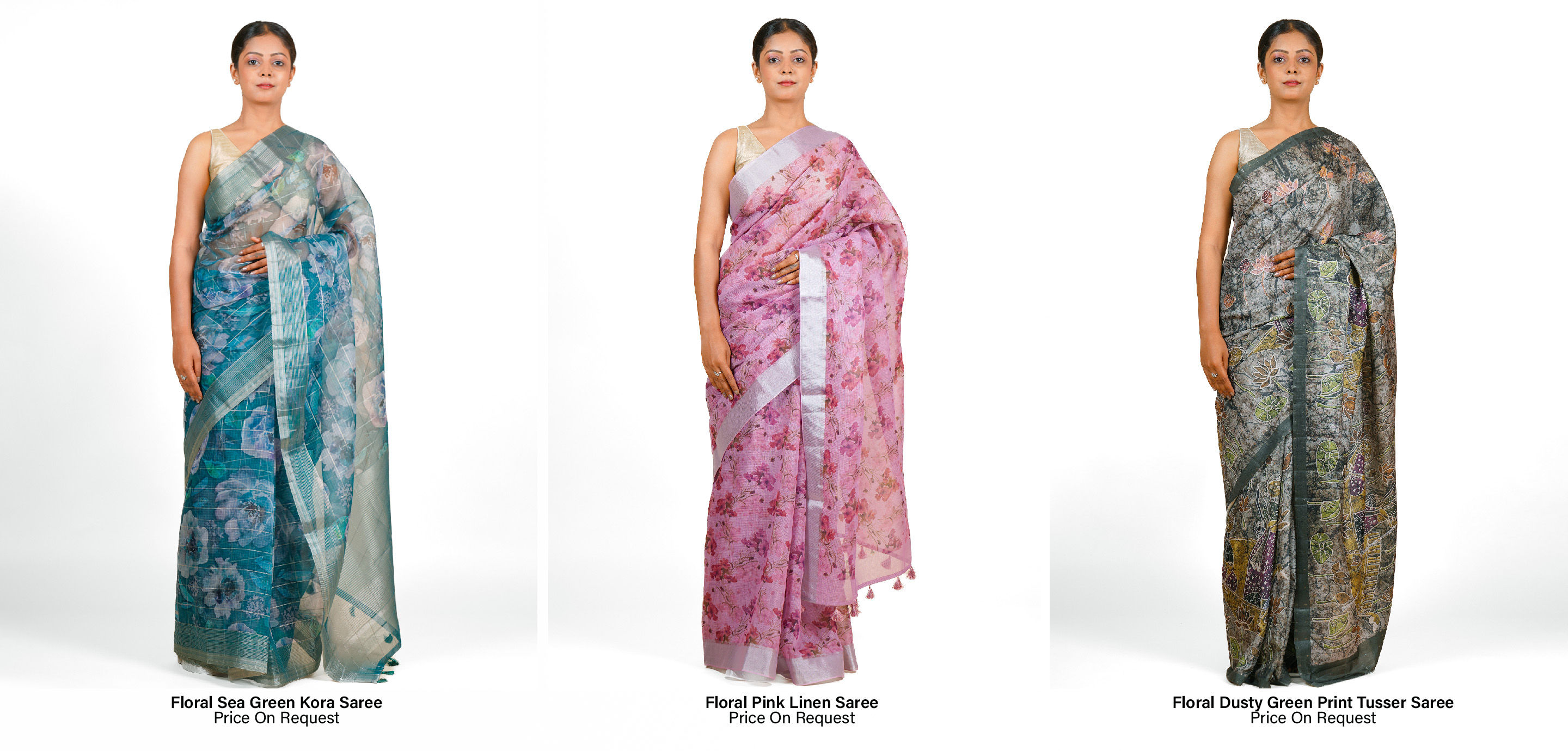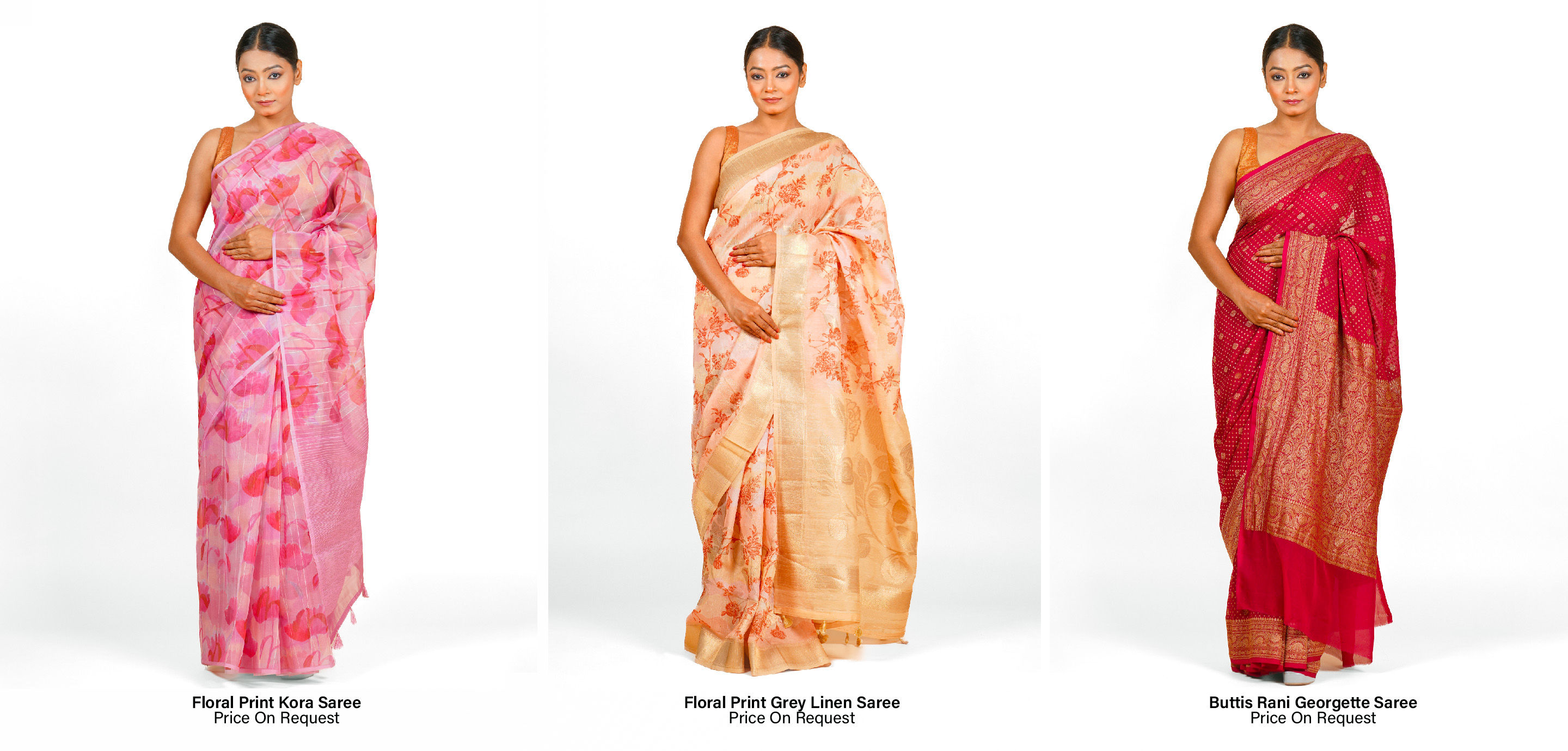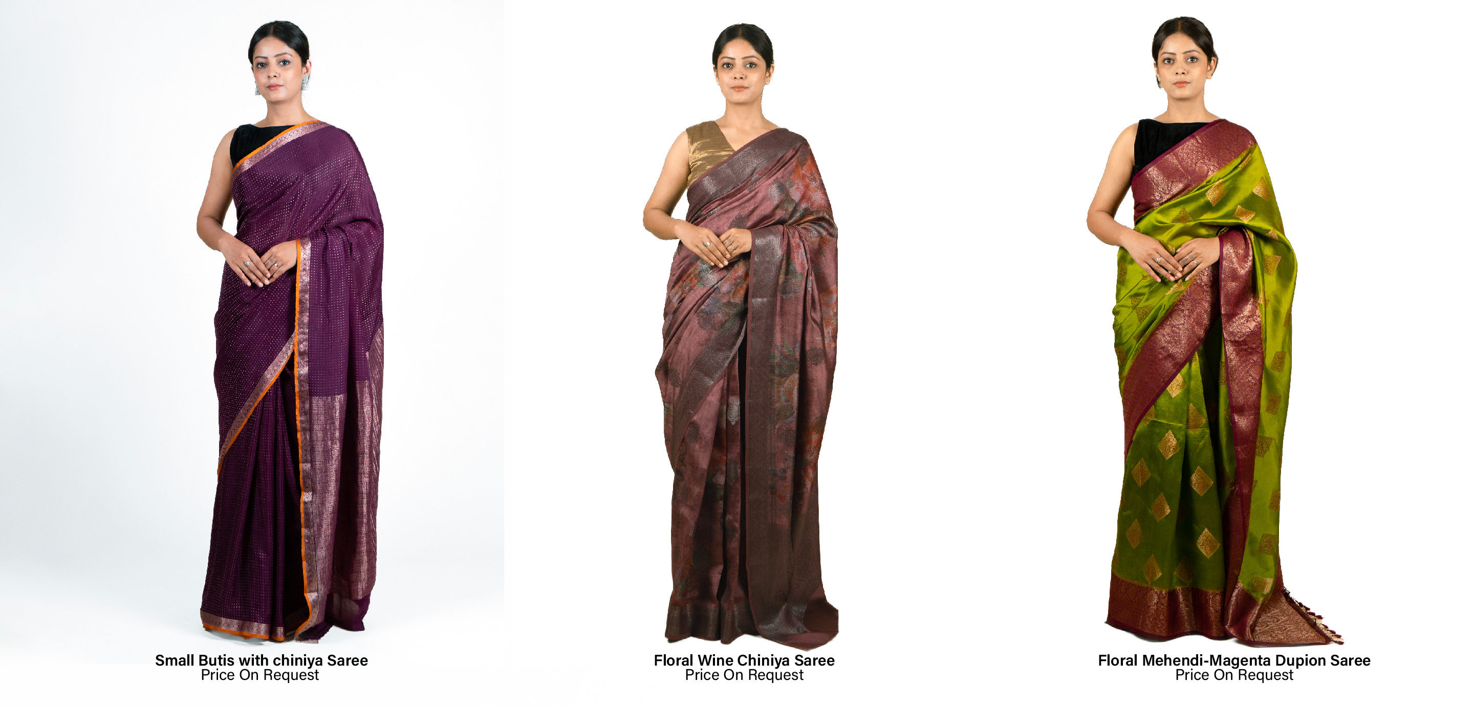 We deal in 100 different types of fabrics and sarees wholesale from all around the country. From chiffon printed sarees, sarees of pure cotton, art printed silks, dyed hand embroidery and Benaras weaving and digital prints to appliquu00e9 & patching and real Zari, we do it all. We are also driven with a passion for brocade sarees and Katan sarees.