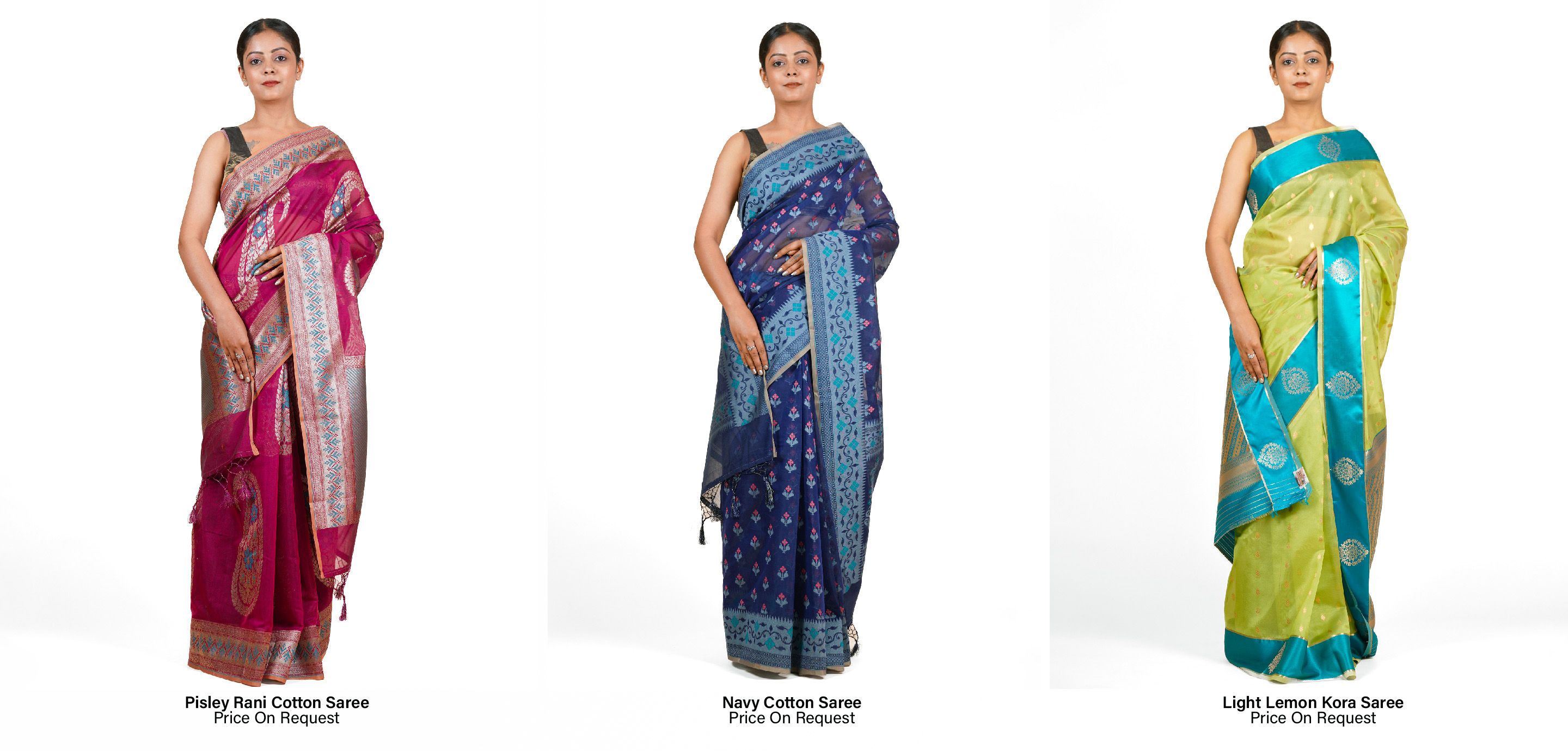 Our banarasi sarees are known for their opulent embroidery and fine silk. Our sarees are amongst the finest in India and are also backed with a lot of ritualistic tales; Hence, they also serve great for gifting purposes. Buy cotton sarees wholesale from us and notice the difference in the quality yourself. If youu2019re looking for the latest cotton silk sarees of 2023,we have what youu2019re aiming for.